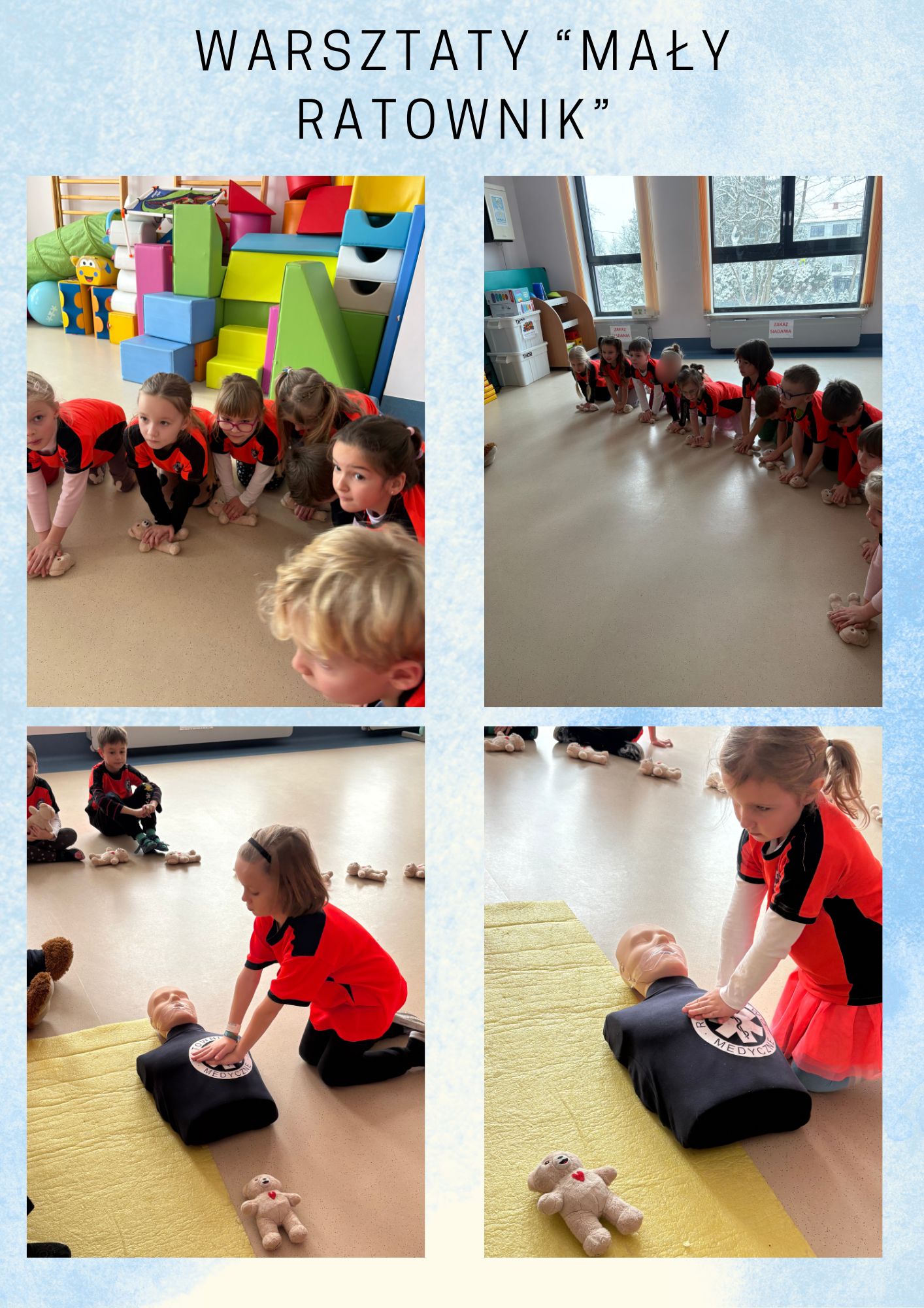 8 stycznia Liski wzięły udział w warsztatach z pierwszej pomocy „Mały Ratownik”. Podczas warsztatów przedszkolaki w atrakcyjny sposób uczyły się, jak zachować się w nagłych wypadkach, jak wezwać pomoc oraz jak dbać o bezpieczeństwo swoje i innych. Dzieci ćwiczyły proste czynności ratownicze, takie jak sprawdzanie przytomności poszkodowanego czy udzielanie pomocy przy drobnych urazach.