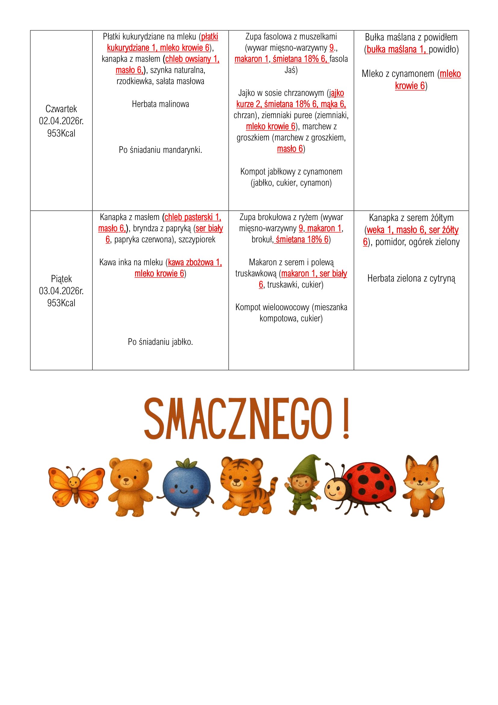 Jadłospis na tydzień 30.03.2026-03.04.2026