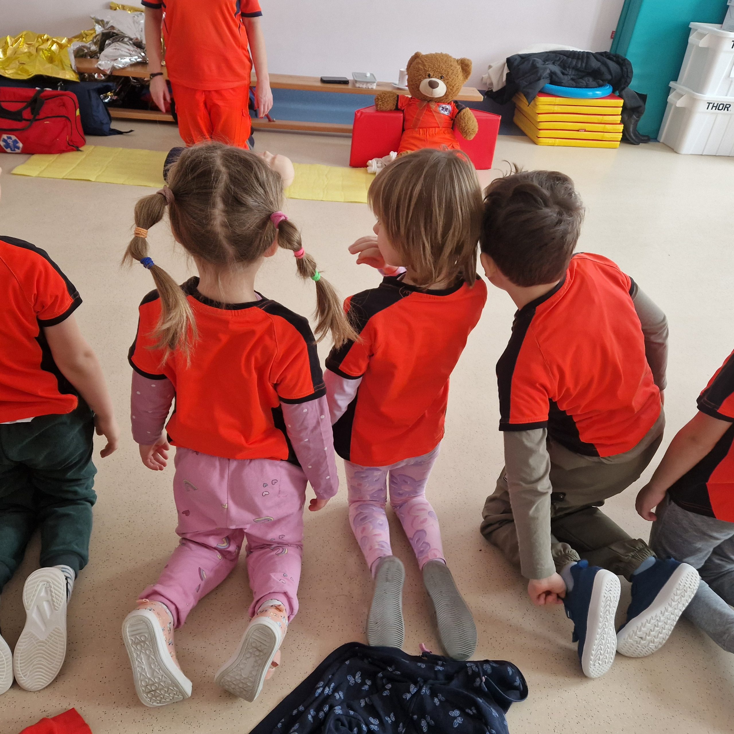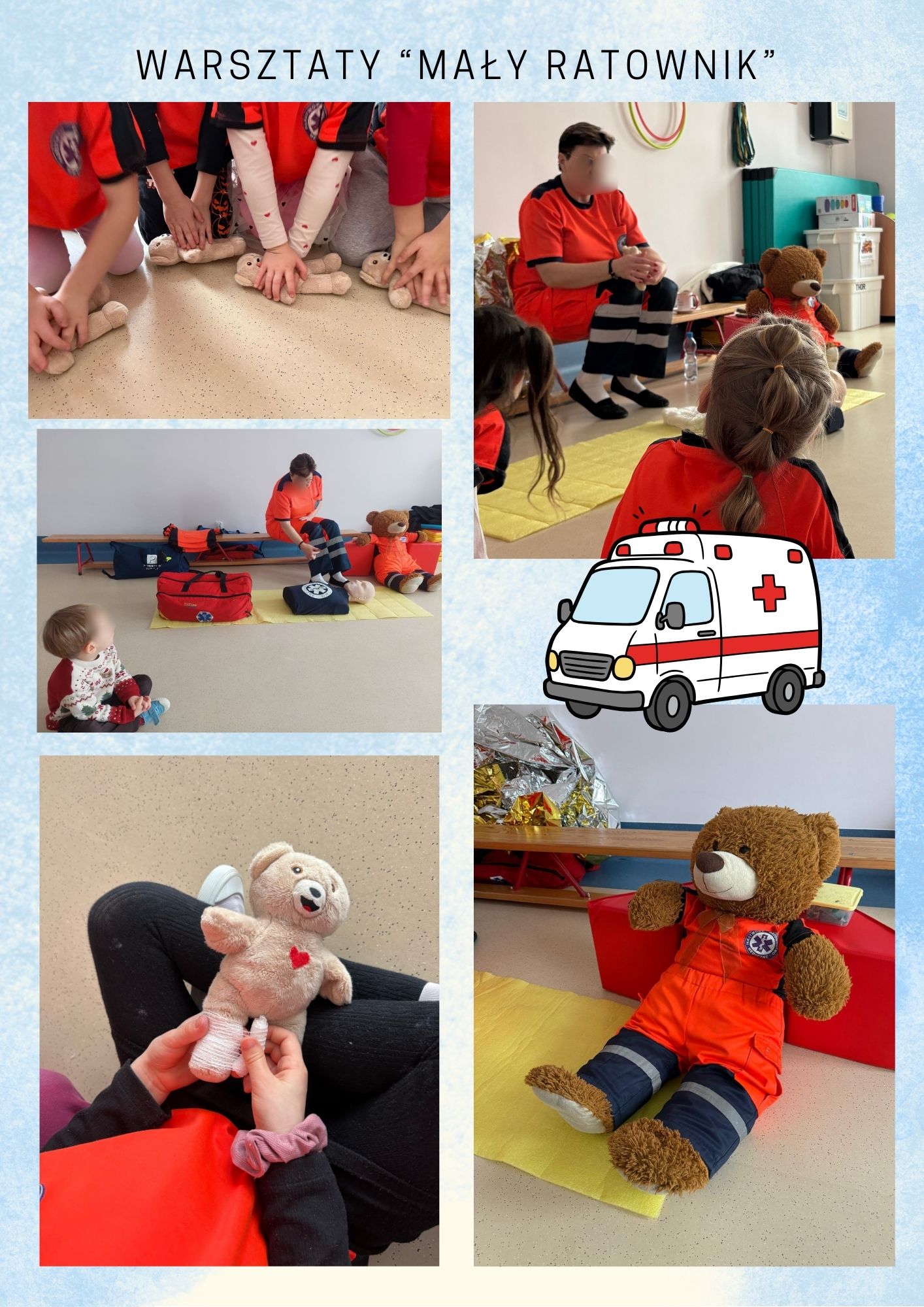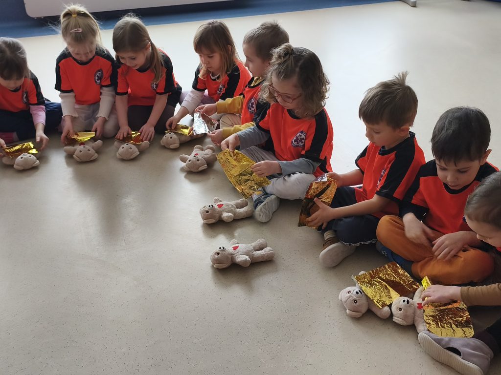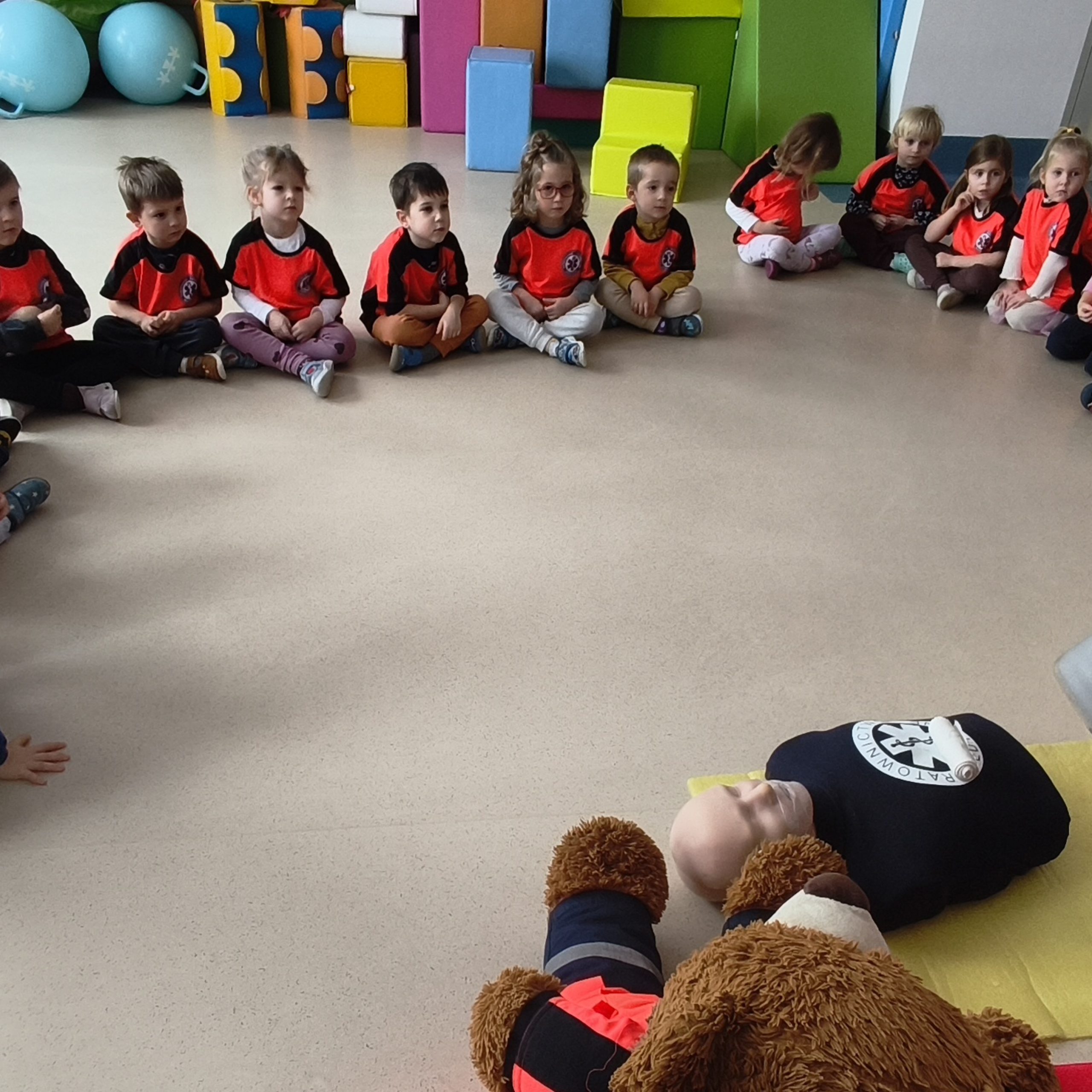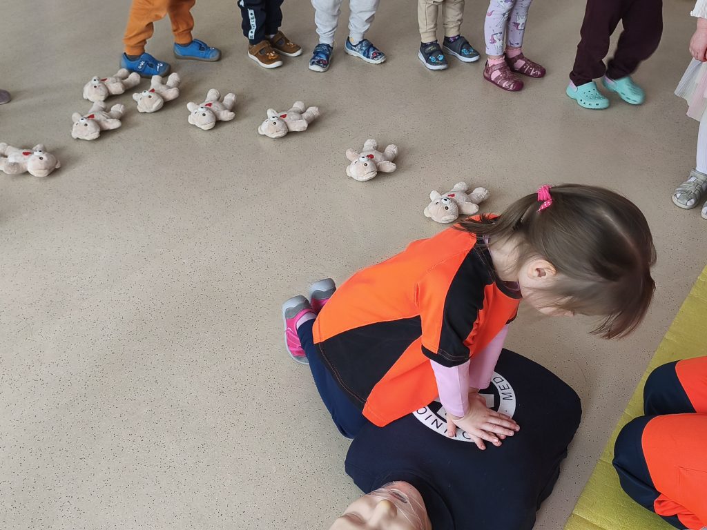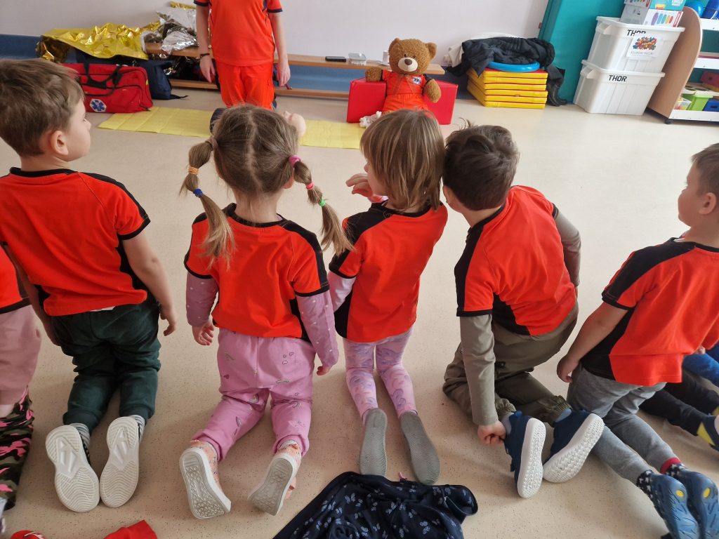W naszym przedszkolu odbyły się warsztaty pierwszej pomocy „Mały Ratownik”. Dzieci poznały podstawowe zasady udzielania pomocy, nauczyły się numeru alarmowego oraz dowiedziały się, jak zachować się w sytuacjach zagrożenia. Zajęcia miały formę zabawy i ćwiczeń praktycznych, dzięki czemu przedszkolaki chętnie i aktywnie w nich uczestniczyły 🚨