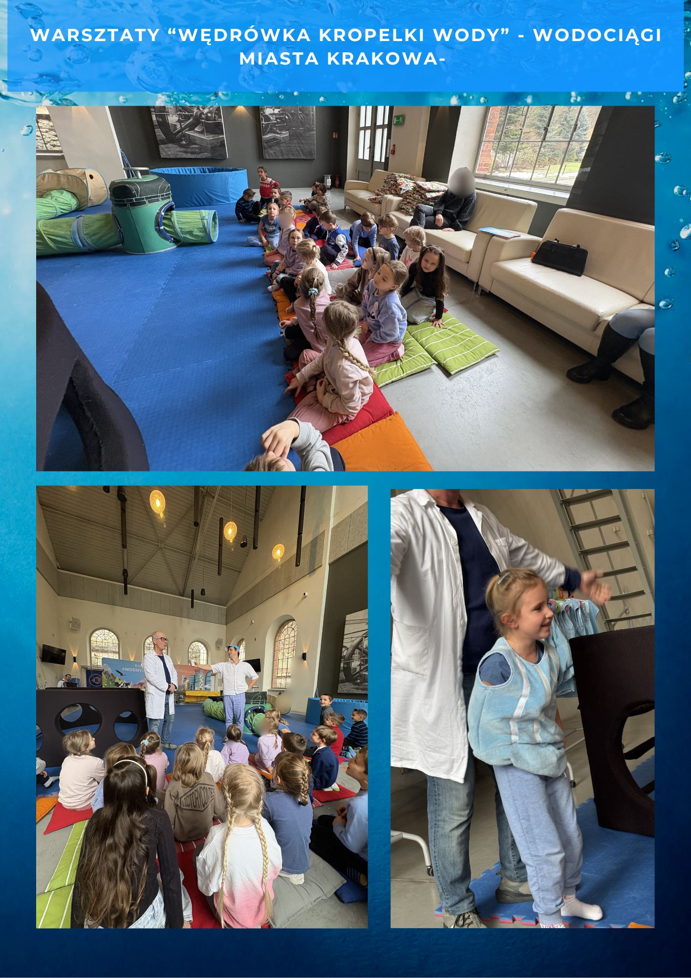 23 lutego Liski wzięły udział w wyjątkowej wycieczce do Wodociągów Miasta Krakowa, gdzie uczestniczyły w warsztatach edukacyjnych „Wędrówka Kropelki Wody”. Dzieci w ciekawy i przystępny sposób poznały drogę, jaką pokonuje woda – od źródła aż do kranu. Poprzez zabawę, opowieści i proste doświadczenia dowiedziały się, dlaczego woda jest tak ważna i jak należy o nią dbać. Była to radosna i pouczająca przygoda, która rozbudziła ciekawość świata i świadomość ekologiczną najmłodszych.
